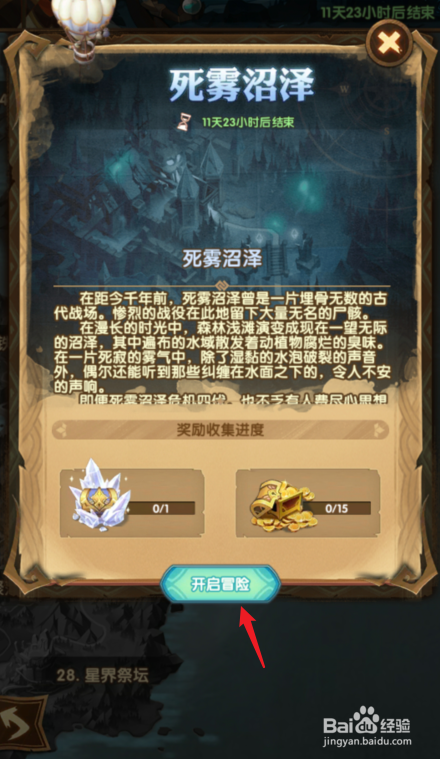 点击死雾池沼关卡,选择开启冒险。