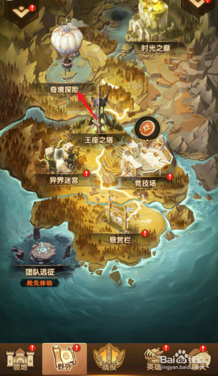 进入后,选择奇境探险的图标进入。