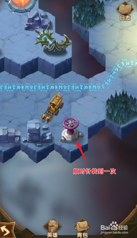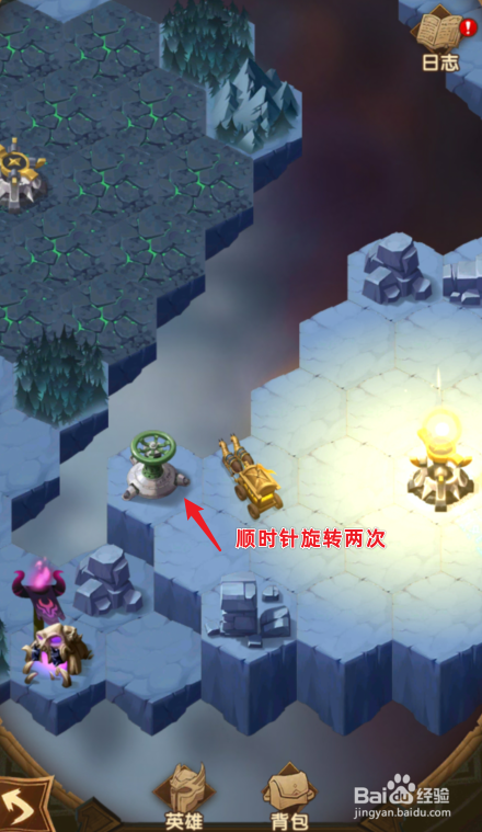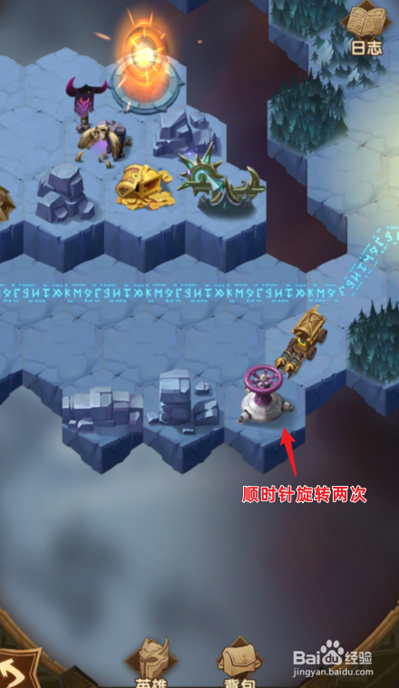 颠末下方的区域,来到紫色开关的位置,顺时针扭转两次。