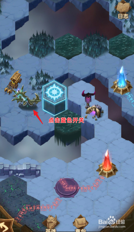 之后,点击蓝色的开关,升起石柱。