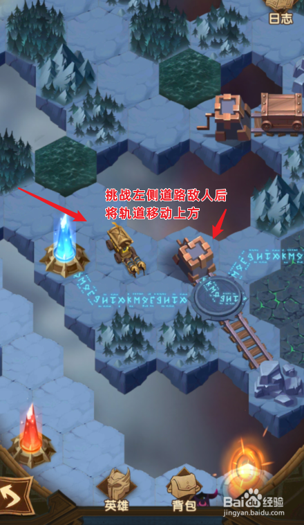移动后,挑战左侧道路的仇敌,将轨道移动到上方。