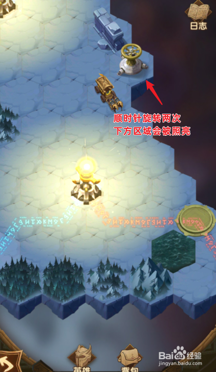 之后需,顺时针扭转两次黄色的机关,下方的区域会被照亮。