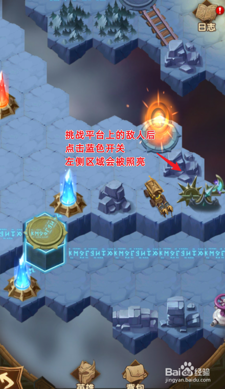 挑战平台的仇敌后,点击蓝色开关,左侧区域会被照亮。