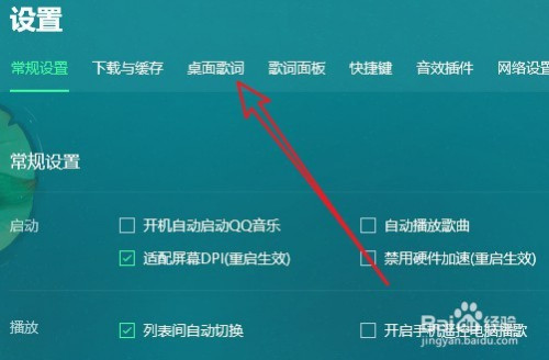 然后在打开的QQ浏览器设置页面,点击桌面歌词选项卡。