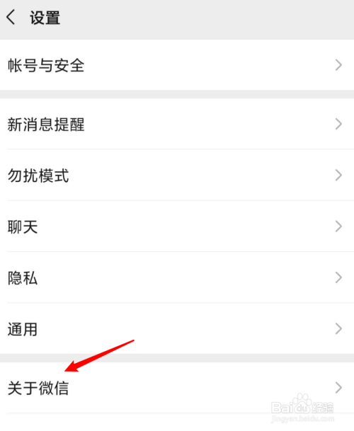 若是没看到,应该是版本还没更新,点击设置页面下的关于微信。