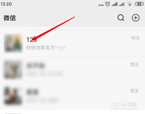 进入微信,点击打开一个群。