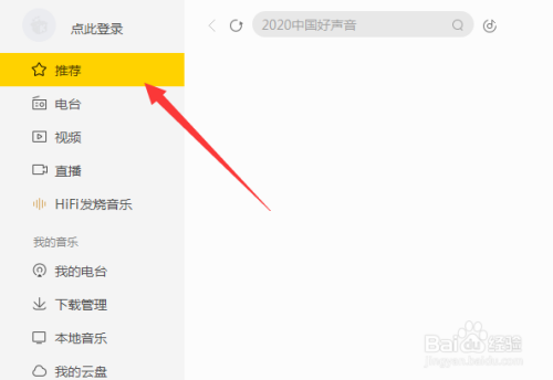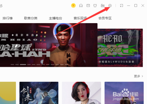 我们进入到酷我音乐的时辰,会显示音乐保举,我们看一下界面的右上角。