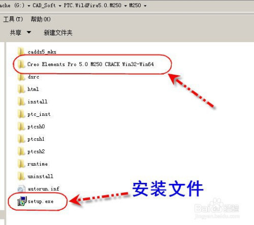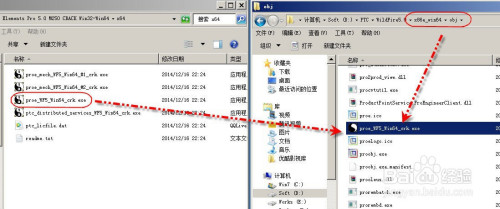 回到安装文件中找到【Creo Elements Pro 5.0 M250 CRACK Win32-Win64】目次下的【x64】目次,把目次中的几个exe文件都复制到您适才安装的proe5目次下的【x86_win64/obj】目次内