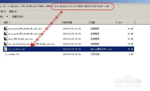 在安装文件中找到【Creo Elements Pro 5.0 M250 CRACK Win32-Win64】目次,本文以64位系统为例,在目次中找到【x64】子目次下的【ptc_licfile.dat】,若是是32位系统则对应【x86】目次