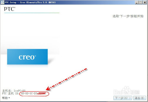 双击setup.exe运行安装,在第一个界面左下角显示ProE安装利用的本家儿机ID,记下这个ID号。
