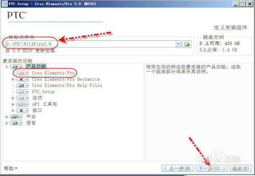 在新界面中选择您要安装的方针目次和要安装的模块。点击【下一步】