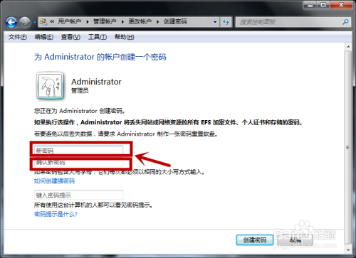 在密码设定页面输入您的密码,在如图两个框里输入一样的密码,点击“建立密码”,此刻密码就设置当作功了进入到下一个页面,如需打消密码则点击“删除密码”,如需改换密码则点击“改换密码”。