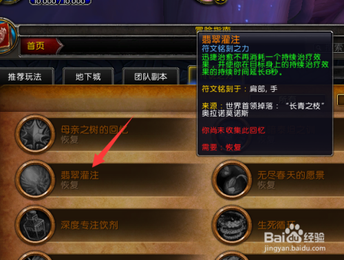 点击之后,来到这个界面,选择一下奶德先天,这里面有一个翡翠灌注,放在上碰头就会看到失落落出处。