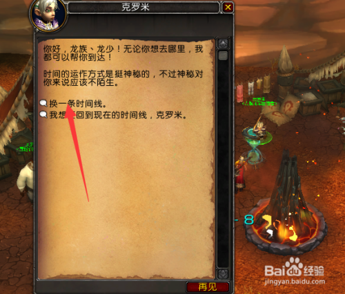 和npc对话,然后点击一下对话中的选择一条时候线。