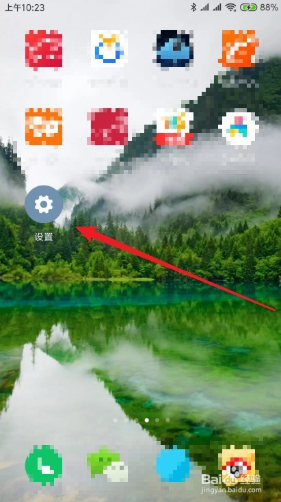 解锁手机屏幕后,摆布滑动点击设置图标。