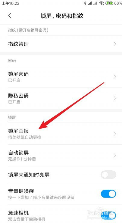 接着在打开的页面点击锁屏画报设置项。