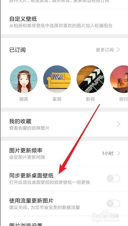 接着在打开的页面找到同步更新桌面壁纸设置项。