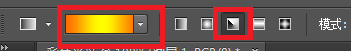 选择渐变东西,在属性栏选择“角度渐变”,至于填充颜色就选择本身喜好的就可以,如图所示: