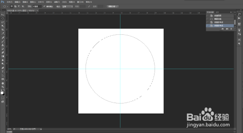 选择椭圆选框东西,按住Shift+Alt键绘制出一个圆形选区,如图所示: