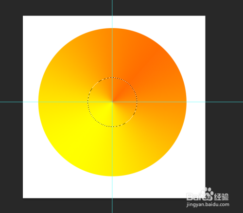 选择椭圆选框东西,以两条标尺线订交处为中间点,按住Shift+Alt键绘制出一个圆形选区,然后在按Delete键删除选区内容,再按Ctrl+D打消选区,按Ctrl+; 键打消标尺线,按Ctrl+R打消标尺,至此,彩色光盘完当作。