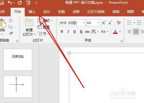 在电脑上打开PPT2019,点击菜单来的插入菜单。