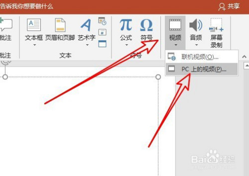 接着点击插入东西栏的视频下拉按钮,选择PC上的视频菜单。