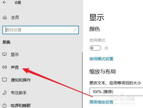 然后在打开的系统窗口,点击左侧的声音菜单。