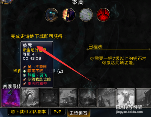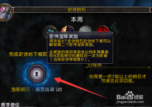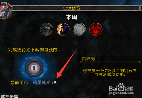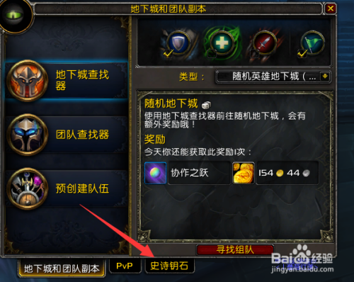 点击之后,我们默认进入到我们随机副本的界面,右下角的菜单中有一个史诗钥匙,点击一下。