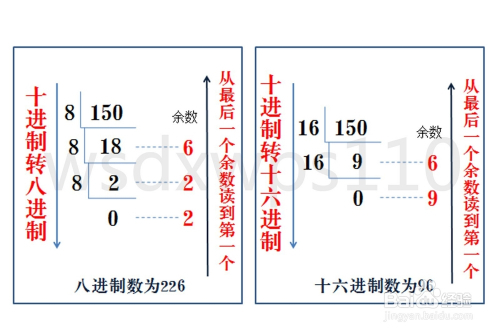 第二:直接法—把十进制转八进制或者十六进制按照除8或者16取余,直到商为0为止。
