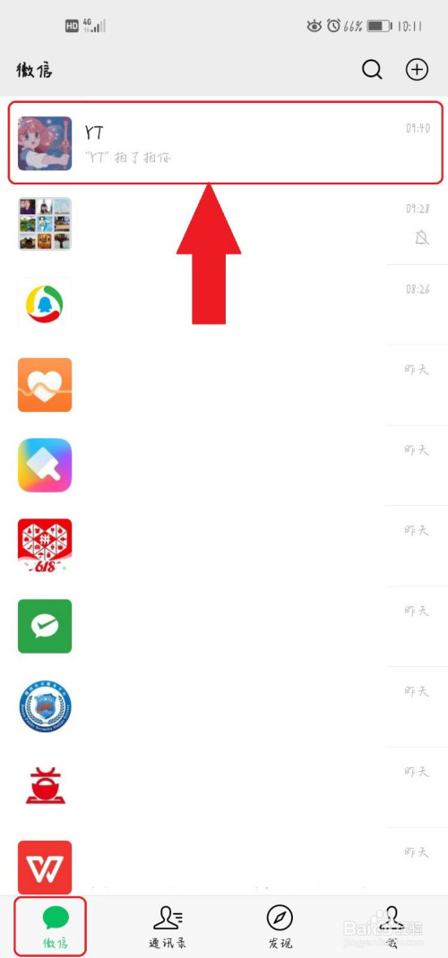 返回微信——选择您要“拍”的老友——进入聊天框