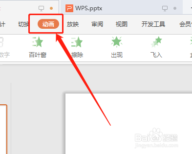 1.打开演示文稿内容,然后选中“动画”选项卡。