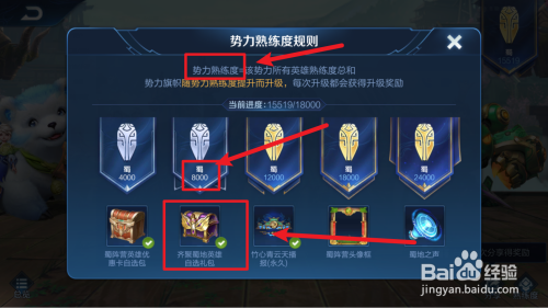 7、在这里势力谙练度达到8000,就可以获得蜀地英雄自选礼包。