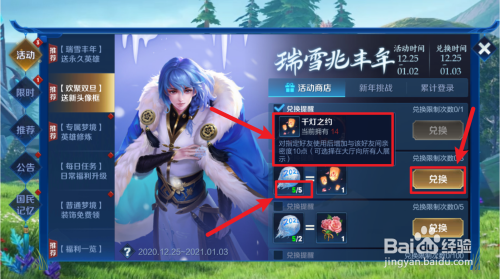 进入今后点击活动商铺,然后就可以看到千灯之约,我们点击兑换