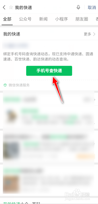 直接利用微信搜刮我的快递,点击手机号查快递。