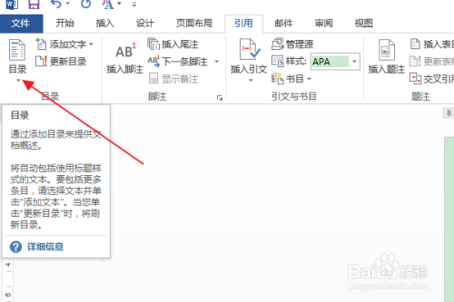 在编纂区中,可以看到已经插入了目次,此时目次利用的是“来自模板”格局。