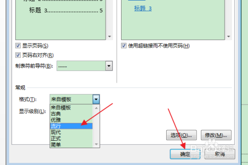 鄙人拉列表中,按照需要选择目次的格局,好比:风行,点击确定按钮。