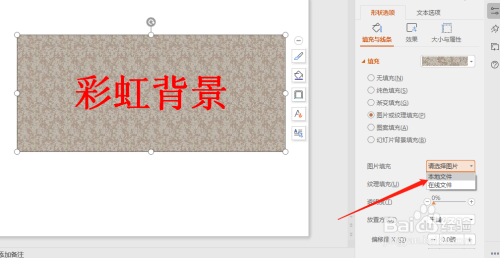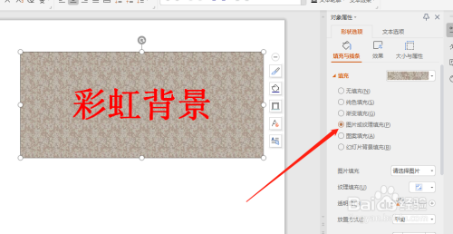 把字体的布景设置当作彩虹,点击图片或纹理填充。