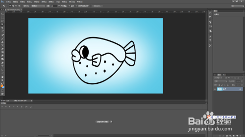 打开PS,新建画布,利用黑色画出河豚的大体轮廓