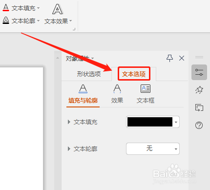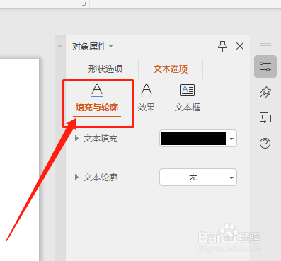 2.然后,点击“文本选项”选项,再点击“填充与轮廓”。