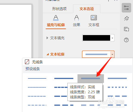 3.最后,在文本轮廓的预设中,选择“双实线”结果即可 。