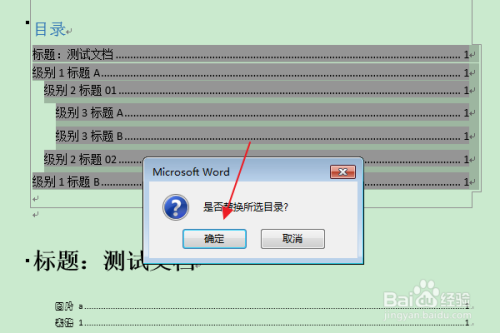在“是否替代所选目次”的提醒框中,点击“是”。