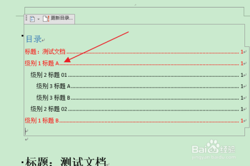 返回编纂区,可以看到选中级别(级别1)的目次项字体颜色已被点窜。
