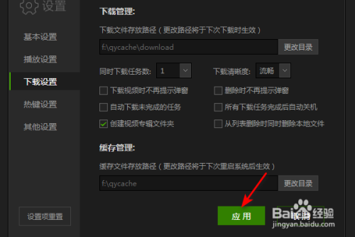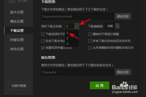 然后点击应用,点击封闭即可,这样便将同时下载使命数设为了1。