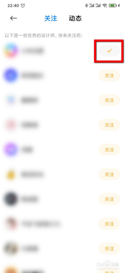 当红色方框处呈现“√”,即表白存眷当作功。