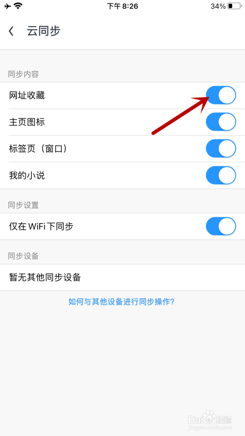 按钮变亮,就能开启网址保藏云同步。