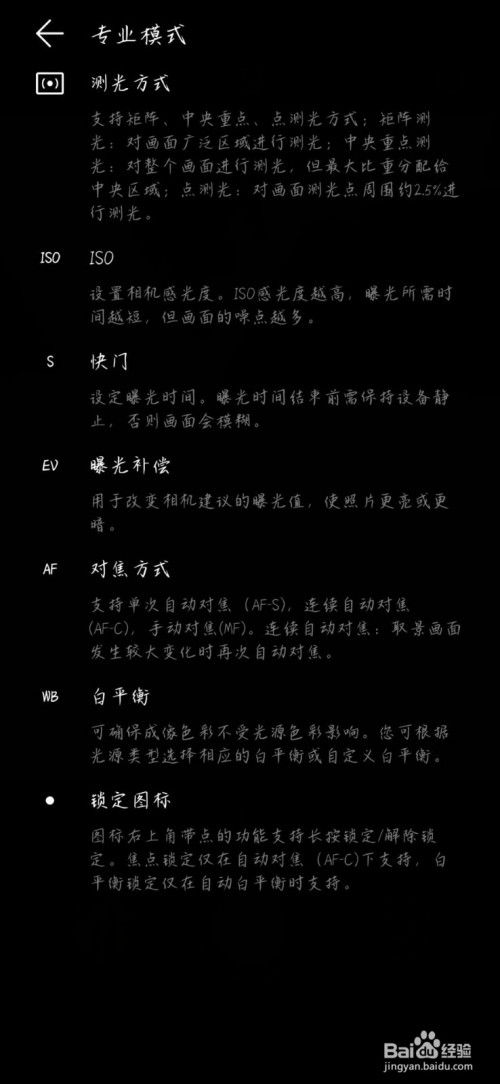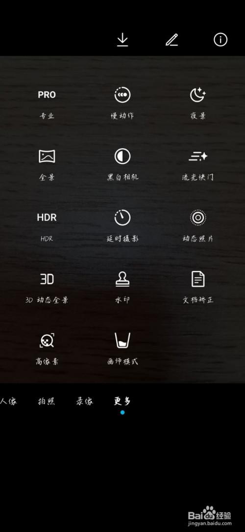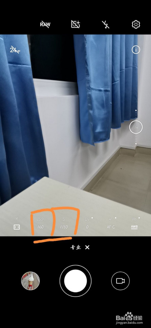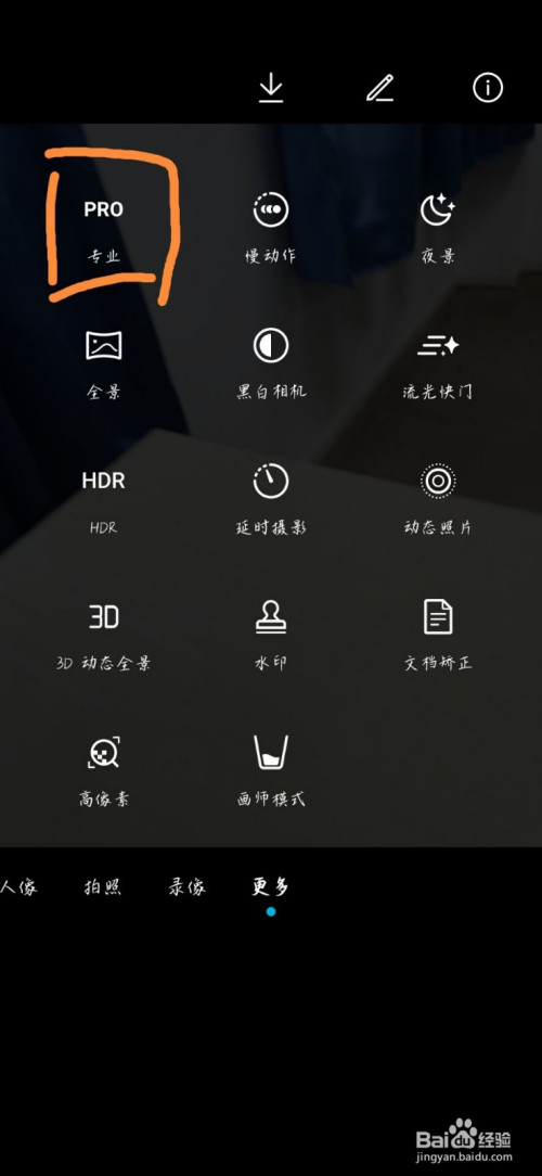 打开相机并选择专业模式