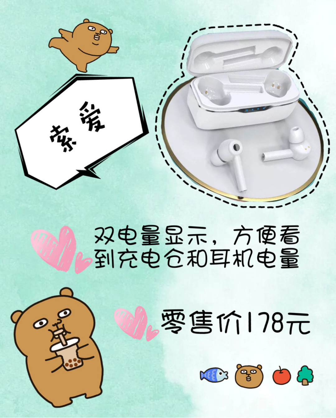 - 双电量显示,可以很便利的看到充电仓和耳机的电量。颜色选择也比力多,有毗连不不变的环境,不严重。外不雅看起来很都雅,清洁舒畅,续航能力也不错,同样撑持无线充电