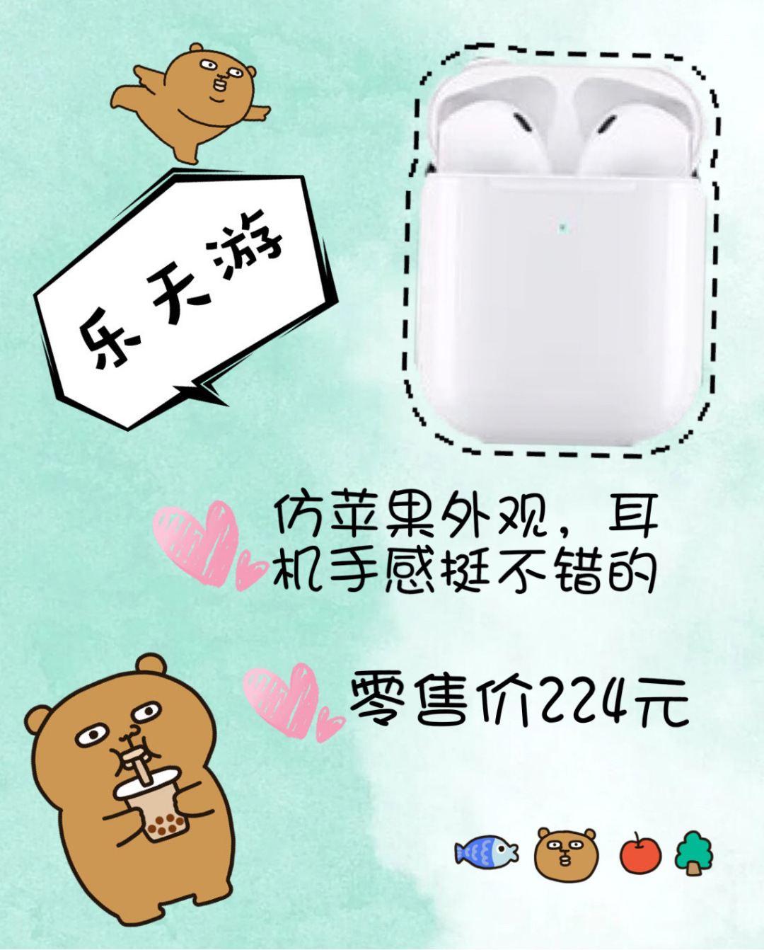- 仿苹果外不雅,耳机手感挺不错的,外壳也蛮精美有质感,颜色也是干清洁净的那种。耳机佩带久了也没有不舒畅的感受,总体仍是不错哒。无敌可爱的庇护套,声音也很是清楚,降噪功力不错,无杂音,适合颜控。