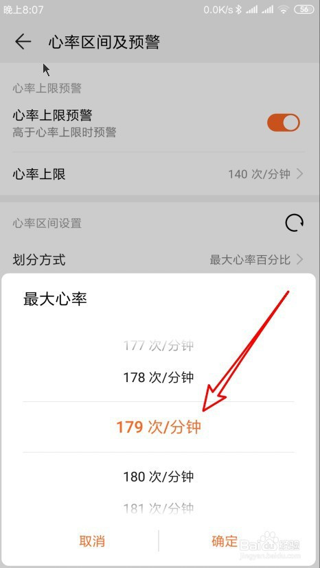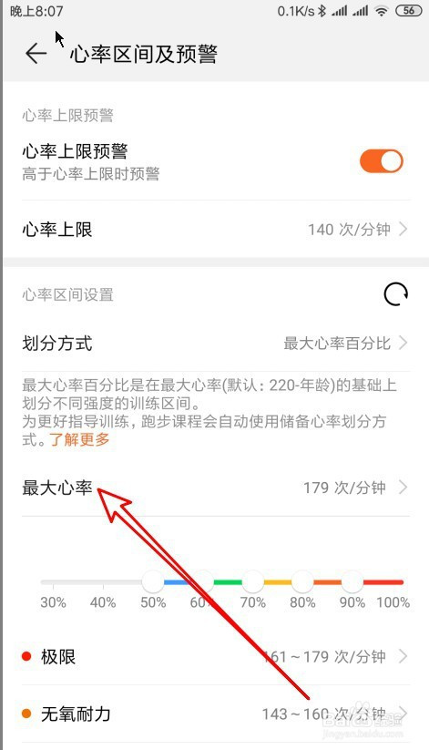 这时就会打开活动健康的设置页面,点击心率区间及预警设置项。
