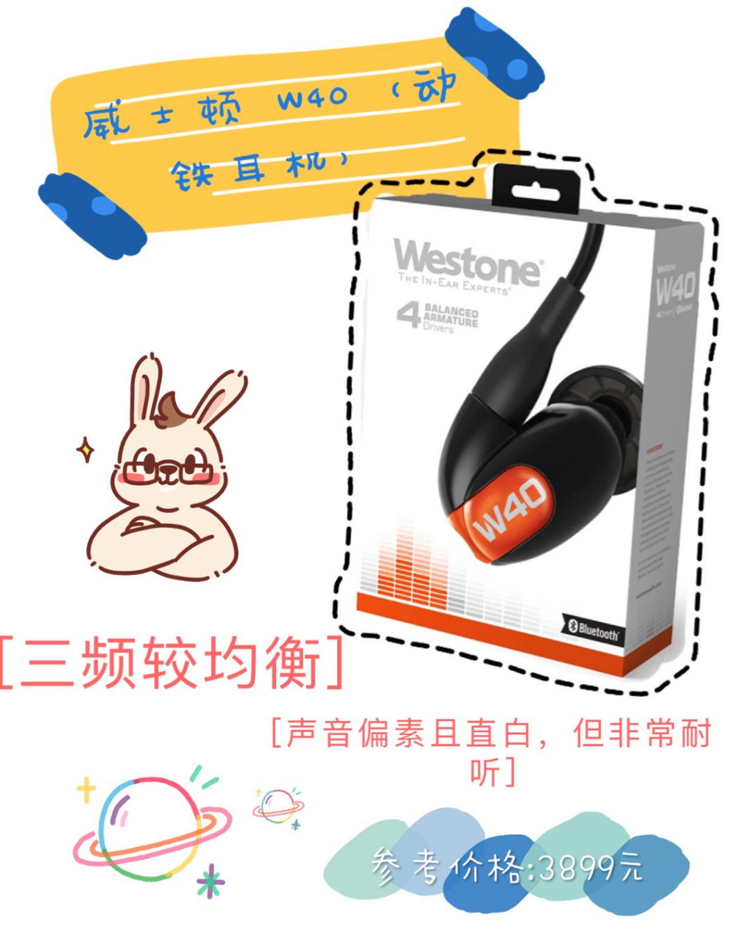 - 这条目不必多说啦,陪我最久的一条目耳机,W40三频算是比力平衡了,声音偏素且直白,没有太多的音染,初听平平,但真的长短常耐听,最喜好的仍是佩带,中听很是舒适,所以当作为我日常外出利用最多的耳机。